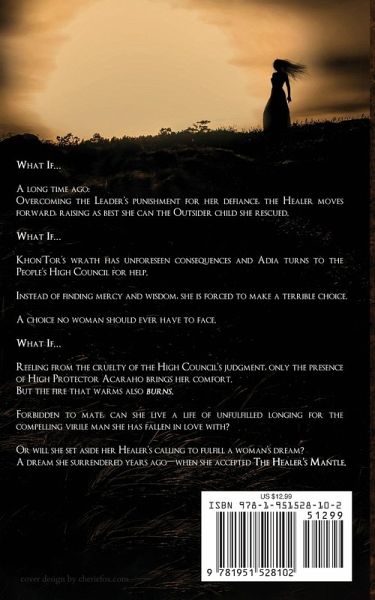 The Healer's Mantle What if...recovering from the Leader's punishment for her defiance, the Healer moves forward raising the Outsider child as best she can. When unforeseen consequences of Khon'Tor's wrath materialize, Adia turns to the People's High Council for help.But instead of receiving mercy and wisdom, she is forced to make a terrible choice-one no woman should ever have to make.Struggling under the cruelty of the High Council's judgment, only the presence of the People's High Protector, Acaraho, brings her any comfort.But the fire that warms, also burns.Forbidden to mate, she prepares to live a life of unsatisfied longing for the compelling, virile, man she has fallen in love with.But can she live with her choice? Or will she set aside a Healer's calling to fulfill a woman's dream?A dream she surrendered long ago, when she accepted The Healer's Mantle. The Healer's Mantle is the second book in the Series Wrak-Ayya: The Age of Shadows by best-selling author Leigh Roberts. This high fantasy will take you on the adventure of a lifetime, set in the underground cave systems of the human-hybrid Sasquatch who ages ago barely escaped extinction.