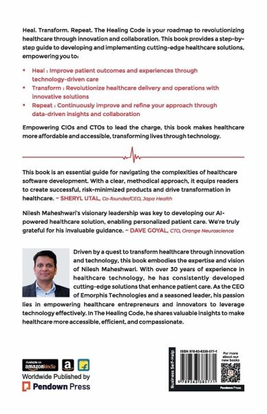 Heal. Transform. Repeat. The Healing Code is your roadmap to revolutionizing healthcare through innovation and collaboration. This book provides a step-by-step guide to developing and implementing cutting-edge healthcare solutions, empowering you to:vHeal: Improve patient outcomes and experiences through technology-driven carevTransform: Revolutionize healthcare delivery and operations with innovative solutionsvRepeat: Continuously improve and refine your approach through data-driven insights and collaborationEmpowering CIOs and CTOs to lead the charge, this book makes healthcare more affordable and accessible, transforming lives through technology.Driven by a quest to transform healthcare through innovation and technology, this book embodies the expertise and vision of Nilesh Maheshwari. With over 30 years of experience in healthcare technology, he has consistently developed cutting-edge solutions that enhance patient care. As the CEO of Emorphis Technologies and a seasoned leader, his passion lies in empowering healthcare entrepreneurs and innovators to leverage technology effectively. In The Healing Code, he shares valuable insights to make healthcare more accessible, efficient, and compassionate.