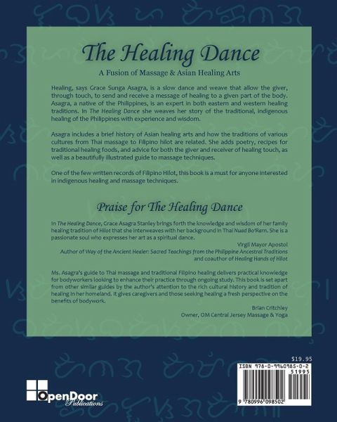 Healing, says Grace Sunga Asagra, is a slow dance and weave that allow the giver, through touch, to send and receive a message of healing to a given part of the body. Asagra, a native of the Philippines, is an expert in both eastern and western healing traditions. In The Healing Dance she weaves her story of the traditional, indigenous healing of the Philippines with experience and wisdom. Asagra includes a brief history of Asian healing arts and how the traditions of various cultures from Thai massage to Filipino hilot are related. She adds poetry, recipes for traditional healing foods, and advice for both the giver and receiver of healing touch, as well as a beautifully illustrated guide to massage techniques. One of the few written records of Filipino Hilot, this book is a must for anyone interested in indigenous healing and massage techniques.