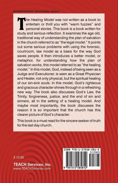 The Healing Model was not written as a book to entertain or thrill you with "warm fuzzies" and personal stories. This book is a book written for study and serious reflection. It examines the age old, traditional way of understanding the plan of salvation in the church referred to as "the legal model." It points out some serious problems with using the forensic, courtroom, law model as a basis for the way God saves people. It then introduces a better model, or metaphor, for understanding how the plan of salvation works, this model referred to as "the healing model." In this model, God, instead of being seen as a Judge and Executioner, is seen as a Great Physician and Healer, not only physical, but the spiritual healing of our sin-sick souls. In this model, God's righteous and gracious character shines through in a refreshing new way. The book also discusses God's Law, the Trinity, forgiveness, justice, and the end of sin and sinners, all in the setting of a healing model. And maybe most importantly, the book discusses the reason it is so important that the church has this clearer picture of God's character. This book is a must read for the sincere seeker of truth for the last day church.
