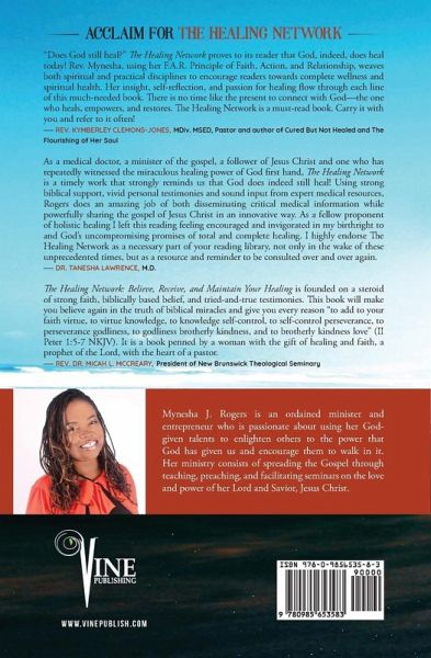 Today, more than ever, it seems as if most people are suffering from one ailment or the other. High blood pressure, diabetes, lupus, cancer, heart disease - it seems each one of us knows someone who is dealing with sickness, and many are asking "Will I be healed?" In her book, The Healing Network: Believe, Receive and Maintain your Healing, Mynesha J. Rogers reminds us that God wants us to be healed. God wants us to live healthy lives that are free from diseases. But the key to believing, receiving and maintaining our healing is found in our network. The Healing Network is a powerful book that focuses on the interconnection of faith, action, and relationships (The F.A.R principle) for our healing and wellbeing. In it you will discover: The biblical foundation for healing How to believe God for your healing Practical steps to take toward the manifestation of your healing How to build the right support team for your healing God still heals. He did it before. He is doing it now and He will do it again. Grounded in scripture and prayer, this book is a resource to help you to create your own Healing Network. It's time for you to believe, receive and maintain your healing!