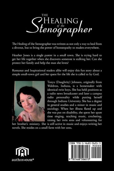 The Healing of the Stenographer was written as not only a way to heal from a divorce, but to bring the power of homeopathy to readers everywhere. Heather Jones is a single parent in a small town. She is trying hard to get her life together when she discovers someone is stalking her. Can she protect her family and help the man she loves? Romance and Inspirational readers alike will enjoy this fun story about a simple small-town girl and her quest for the life she is called to by God.