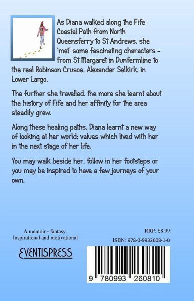 Diana walked along the Fife Coastal Path from North Queensferry - beneath the famous Forth Rail Bridge - to St Andrews. While on her way she trod in the footprints of a multitude of pilgrims and famous people through the ages, but she also followed in the steps of ordinary folks of Fife. She 'met' some fascinating characters - from St Margaret in Dunfermline to the real Robinson Crusoe, Alexander Selkirk, in Lower Largo. Diana' heart was captured by the beautiful surroundings along these healing paths. As she paused to have a 'wee blether' with those she 'met,' she learnt a new way of looking at her world, finding values which gave her a blueprint for the next stage in her life and she was fortunate to discover a sense of peace. The further Diana travelled the more she became absorbed in the history of Fife and her affinity for the area grew. As you read on you may find yourself 'walking beside Diana.' Her experiences might help you with some of the challenges you face in your own life, or they may inspire you to visit the region of Fife and have adventures of your own. Some would call this an allegory but it is certainly a memoir with elements of fantasy. Diana leaves the reader to judge which is which. Part 1: From Redundancy to Rejuvenation ~ Serendipity! Diana and her husband temporarily relocated them both to Fife. At the same time Diana was made redundant from a life time of teaching. During this time they walked along the coast in manageable chunks whilst Diana reflected the past and possible futures. Part 2: Letting Go and Moving on ~ In order to live her new life to the full, Diana needed to truly let go of much of her old life. That did not mean forgetting her friends and family but finding a new and deeper relationship with them, even at a distance. As she and her husband threw themselves into community life in Fife, deep down Diana was still searching for her true purpose and with the encouragement of new and old friends alike she ....