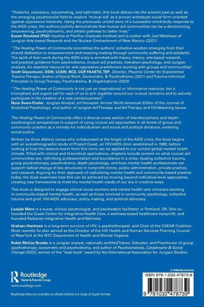"The Healing Power of Community concretizes the authors' collective wisdom emerging from their shared dedication to empowerment and meaning-making through community suffering and solidarity. The spirit of their work during the AIDS crisis is enriched with theory, history, arts-based research, and practical guidance from psychodrama, mutual aid practices, liberation psychology, and Jungian analysis. An essential resource for anti-oppressive practitioners working with groups and communities."