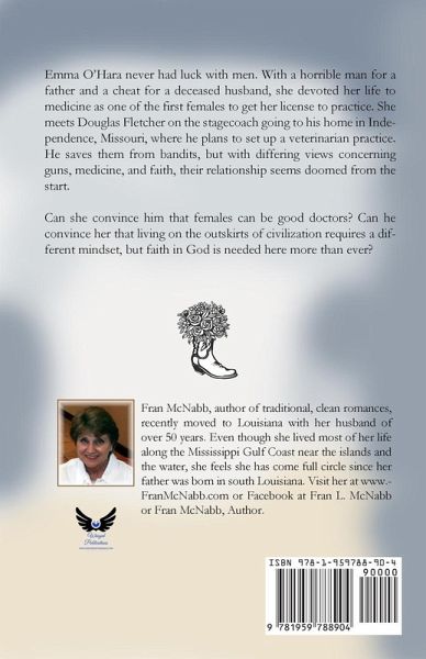 Emma O'Hara never had luck with men. With a horrible man for a father and a cheat for a deceased husband, she devoted her life to medicine as one of the first females to get her license to practice. She meets Douglas Fletcher on the stagecoach going to his home in Independence, Missouri, where he plans to set up a veterinarian practice. He saves them from bandits, but with differing views concerning guns, medicine, and faith, their relationship seems doomed from the start. Can she convince him that females can be good doctors? Can he convince her that living on the outskirts of civilization requires a different mindset, but faith in God is needed here more than ever?