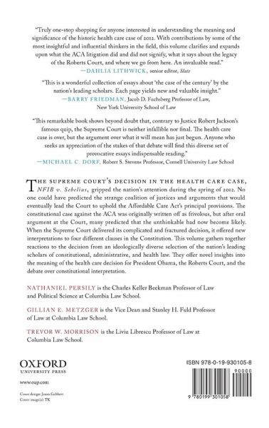 The Supreme Court's decision in the Health Care Case, NFIB v. Sebelius, gripped the nation's attention during the spring of 2012. No one could have predicted the strange coalition of justices and arguments that would eventually lead the Court to uphold the Affordable Care Act's principal provisions. The constitutional case against the ACA was originally written off as frivolous, but after oral argument at the Court, many predicted that the unthinkable had now become likely. When the Supreme Court delivered its complicated and fractured decision, it offered new interpretations to four different clauses in the Constitution. This volume gathers together reactions to the decision from an ideologically diverse selection of the nation's leading scholars of constitutional, administrative, and health law. They offer novel insights into the meaning of the health care decision for President Obama, the Roberts Court, and the debate over constitutional interpretation.