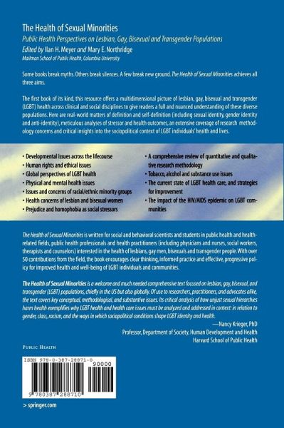 "The Health of Sexual Minorities is a welcome and much needed comprehensive text focused on lesbian, gay, bisexual, and transgender (LGBT) populations, chiefly in the U.S. but also globally. Of use to researchers, practitioners, and advocates alike, the text covers key conceptual, methodological, and substantive issues. Its critical analysis of how unjust sexual hierarchies harm health exemplifies why LBGT health and health care issues must be analyzed and addressed in context: in relation to gender, class, racism, and the ways in which sociopolitical conditions shape LGBT identity and health."
