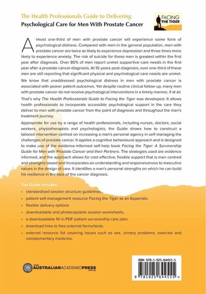 Appropriate for a range of practitioners, including nurses, doctors, social workers, physiotherapists and psychologists, this guide provides expert information and materials to construct a tailored psychological intervention centred on masculine values to help men manage the challenges of prostate cancer. It uses the separately published self-help book Facing the Tiger: A Survivorship Guide for Men with Prostate Cancer and their Partners.