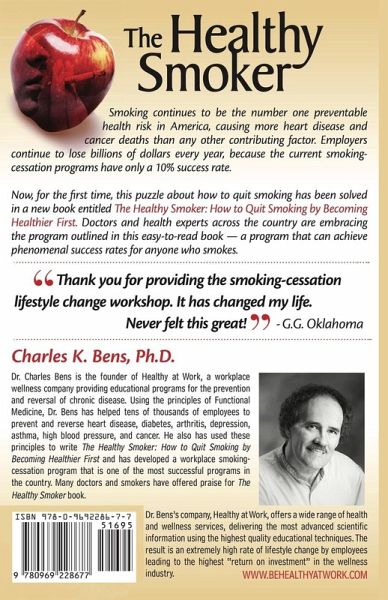 Smoking continues to be the number one preventable health risk in America, causing more heart disease and cancer deaths than any other contributing factor. Employers continue to lose billions of dollars every year, because the current smoking-cessation programs have only a 10% success rate. For the first time, the puzzle about how to quit smoking has been solved in this book. Doctors and health experts across the country are embracing the program outlined in this easy-to-read book, a program that can achieve phenomenal success rates for anyone who smokes.
