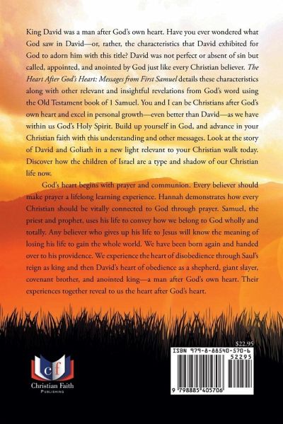King David was a man after God's own heart. Have you ever wondered what God saw in David--or, rather, the characteristics that David exhibited for God to adorn him with this title? David was not perfect or absent of sin but called, appointed, and anointed by God just like every Christian believer. The Heart After God's Heart: Messages from First Samuel details these characteristics along with other relevant and insightful revelations from God's word using the Old Testament book of 1 Samuel. You and I can be Christians after God's own heart and excel in personal growth--even better than David--as we have within us God's Holy Spirit. Build up yourself in God, and advance in your Christian faith with this understanding and other messages. Look at the story of David and Goliath in a new light relevant to your Christian walk today. Discover how the children of Israel are a type and shadow of our Christian life now. God's heart begins with prayer and communion. Every believer should make prayer a lifelong learning experience. Hannah demonstrates how every Christian should be vitally connected to God through prayer. Samuel, the priest and prophet, uses his life to convey how we belong to God wholly and totally. Any believer who gives up his life to Jesus will know the meaning of losing his life to gain the whole world. We have been born again and handed over to his providence. We experience the heart of disobedience through Saul's reign as king and then David's heart of obedience as a shepherd, giant slayer, covenant brother, and anointed king--a man after God's own heart. Their experiences together reveal to us the heart after God's heart.