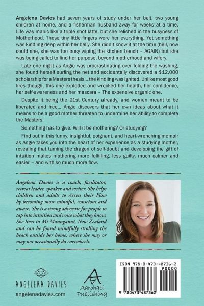 Angelena Davies had seven years of study under her belt, two young children at home, and a fisherman husband away for weeks at a time. Life was manic like a triple shot latte, but she relished in the busyness of Motherhood. Those tiny little fingers were her everything. Yet something was kindling deep within her belly. She didn’t know it at the time (hell, how could she, she was too busy wiping the kitchen bench – AGAIN) but she was being called to find her purpose, beyond motherhood and wifery. Late one night as Angie was procrastinating over folding the washing, she found herself surfing the net and accidentally discovered a $12,000 scholarship for a Masters thesis… the kindling was ignited. Unlike most good fires though, this one exploded and wrecked her health, her confidence, her self-awareness and her mascara – the organic one that costs twice as much. Despite it being the 21st Century already, and women meant to be liberated and free… Angie discovers that her own ideas about what it means to be a good mother threaten to undermine her ability to complete the Masters. Something has to give. Will it be mothering? Or studying? Find out in this funny, insightful, poignant, and heart-wrenching memoir as Angie takes you into the heart of her experience as a studying mother, revealing that taming the dragon of self-doubt and developing the gift of intuition makes mothering more fulfilling, less guilty, much calmer and easier – and with so much more flow.