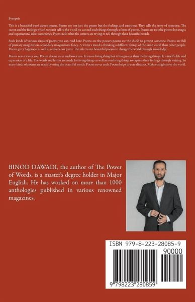 Synopsis This is a beautiful book about poems. Poems are not just the poems but the feelings and emotions. They tells the story of someone. The secret and the feelings which we can't tell to the world we can tell such things through a form of poems. Poems are not the poems but magic and supernatural ideas sometimes. Poems tells what the writers are trying to tell through their beautiful words. Such kinds of various kinds of poems you can read here. Poems are the powers poems are the shield to protect someone. Poems are full of primary imagination, secondary imagination, fancy. A writer's mind is thinking a different things of the same world than other people. Poems gives happiness as well as reduces our pains. The ink creates beautiful poems to change the world through knowledge. Poems never leaves you. Poems always cares and loves you. It is non living thing but it has greater than the living things. It is itself a life and expression of a life. The words and letters are made for living things as well as non living things to express their feelings through writing. So many kinds of poems are made by using the beautiful words. Poems never ends. Poems helps to cure diseases. Makes enlighten to the world.
