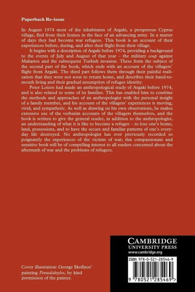 In August 1974 most of the inhabitants of Argaki, a prosperous Cypriot village, fled from their homes in the face of an advancing army. In a matter of days they had become war refugees. This book is an account of their experiences before, during and after their flight from their village. Peter Loizos had made an anthropological study of Argaki before 1974 and is also related to some of its families. This has enabled him to combine the methods and approaches of an anthropologist with the personal insight of a family member and his account of the villagers' experiences is moving, vivid and sympathetic. No anthropologist has ever previously recorded so poignantly the experiences of the victims of war; this compassionate and sensitive book will be of compelling interest to all readers concerned about the aftermath of war and the problems of refugees.