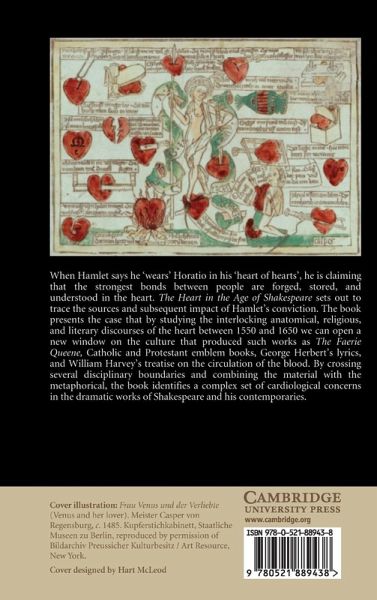 When Hamlet says he 'wears' Horatio in his 'heart of hearts', he is claiming that the strongest bonds between people are forged, stored, and understood in the heart. The Heart in the Age of Shakespeare sets out to trace the sources and subsequent impact of Hamlet's conviction. The book presents the case that by studying the interlocking anatomical, religious, and literary discourses of the heart between 1550 and 1650 we can open a new window on the culture that produced such works as The Faerie Queene, Catholic and Protestant emblem books, George Herbert's lyrics, and William Harvey's treatise on the circulation of the blood. By crossing several disciplinary boundaries and combining the material with the metaphorical, the book identifies a complex set of cardiological concerns in the dramatic works of Shakespeare and his contemporaries.