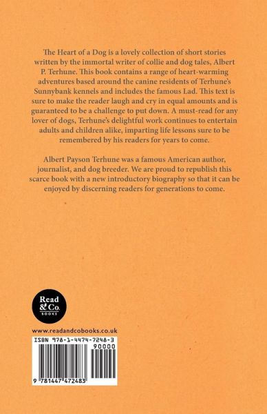 The Heart of a Dog is a lovely collection of short stories written by the immortal writer of collie and dog tales, Albert P. Terhune. This book contains a range of heart-warming adventures based around the canine residents of Terhune's Sunnybank kennels and includes the famous Lad. This text is sure to make the reader laugh and cry in equal amounts and is guaranteed to be a challenge to put down. A must-read for any lover of dogs, Terhune's delightful work continues to entertain adults and children alike, imparting life lessons sure to be remembered by his readers for years to come. Albert Payson Terhune was a famous American author, journalist, and dog breeder. We are proud to republish this scarce book with a new introductory biography so that it can be enjoyed by discerning readers for generations to come.