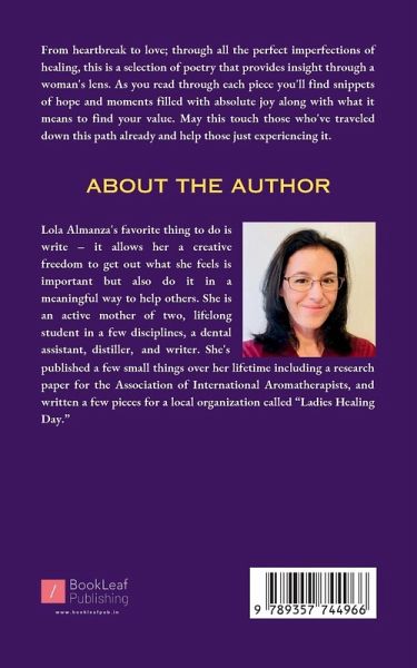 From heartbreak to love; through all the perfect imperfections of healing, this is a selection of poetry that provides insight through a woman's lens. As you read through each piece you'll find snippets of hope and moments filled with absolute joy along with what it means to find your value. May this touch those who've traveled down this path already and help those just experiencing it.