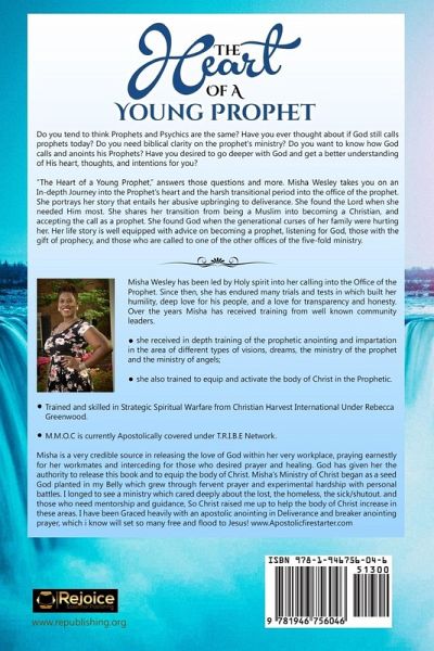 Do you tend to think Prophets and Psychics are the same? Have you ever thought about if God still calls prophets today? Do you need biblical clarity on the prophet's ministry? Do you want to know how God calls and anoints his Prophets? Have you desired to go deeper with God and get a better understanding of His heart, thoughts, and intentions for you? "The Heart of a Young Prophet," answers those questions and more. Misha Wesley takes you on an In-depth Journey into the Prophet's heart and the harsh transitional period into the office of the prophet. She portrays her story that entails her abusive upbringing to deliverance. She found the Lord when she needed Him most. She shares her transition from being a Muslim into becoming a Christian, and accepting the call as a prophet. She found God when the generational curses of her family were hurting her. Her life story is well equipped with advice on becoming a prophet, listening for God, those with the gift of prophecy, and those who are called to one of the other offices of the five-fold ministry. Do you tend to think Prophets and Psychics are the same? Have you ever thought about if God still calls prophets today? Do you need biblical clarity on the prophet's ministry? Do you want to know how God calls and anoints his Prophets? Have you desired to go deeper with God and get a better understanding of His heart, thoughts, and intentions for you? "The Heart of a Young Prophet," answers those questions and more. Misha Wesley takes you on an In-depth Journey into the Prophet's heart and the harsh transitional period into the office of the prophet. She portrays her story that entails her abusive upbringing to deliverance. She found the Lord when she needed Him most. She shares her transition from being a Muslim into becoming a Christian, and accepting the call as a prophet. She found God when the generational curses of her family were hurting her. Her life story is well equipped with advice on becoming a prophet, listening for God, those with the gift of prophecy, and those who are called to one of the other offices of the five-fold ministry.