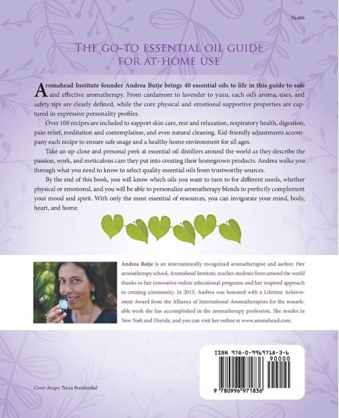 Forty essential oils' unique properties come to life in this guide to safe and effective aromatherapy from Aromahead Institute co-founder Andrea Butje. Full of essential practical information (Latin name, aroma, uses, and safety tips) as well as "personality" profiles expressing the core physical, spiritual, and emotional supportive capabilities, this go-to guide is easy to reference and enjoyable to read. Over 100 recipes are provided for boosting skin care, rest and relaxation, respiratory, digestion, pain relief, meditation and contemplation, and natural cleaning, and kid-friendly adjustments accompany each recipe. Both budding and experienced aromatherapists alike will be able to create personalized essential oil blends for happy, healthy bodies, minds, spirits, and homes.
