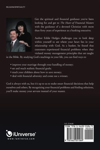 Get the spiritual and financial guidance you've been looking for and get to The Heart of Financial Matters with the guidance of a devoted Christian with more than forty years of experience as a banking executive. Author Eddie Hedges challenges you to look deep within yourself to see where your heart lies in your relationship with God. As a banker, he found that customers experienced financial problems when they violated money management principles that are taught in the Bible. By studying God's teachings in your life, you can find ways to ¿ improve your marriage through your handling of money; ¿ set and reach realistic financial goals; ¿ teach your children about how to save money; ¿ deal with financial adversity and come out a winner. God is always with us, but it's up to us to make smart financial decisions that help ourselves and others. By recognizing your financial problems and finding solutions, you'll make money your servant instead of your master.