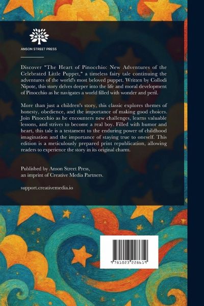 Discover "The Heart of Pinocchio: New Adventures of the Celebrated Little Puppet," a timeless fairy tale continuing the adventures of the world's most beloved puppet. Written by Collodi Nipote, this story delves deeper into the life and moral development of Pinocchio as he navigates a world filled with wonder and peril. More than just a children's story, this classic explores themes of honesty, obedience, and the importance of making good choices. Join Pinocchio as he encounters new challenges, learns valuable lessons, and strives to become a real boy. Filled with humor and heart, this tale is a testament to the enduring power of childhood imagination and the importance of staying true to oneself. This edition is a meticulously prepared print republication, allowing readers to experience the story in its original charm. This work has been selected by scholars as being culturally important, and is part of the knowledge base of civilization as we know it. This work is in the public domain in the United States of America, and possibly other nations. Within the United States, you may freely copy and distribute this work, as no entity (individual or corporate) has a copyright on the body of the work. Scholars believe, and we concur, that this work is important enough to be preserved, reproduced, and made generally available to the public. We appreciate your support of the preservation process, and thank you for being an important part of keeping this knowledge alive and relevant.