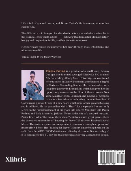 Life is full of ups and downs, and Teresa Taylor's life is no exception to that earthly rule. The difference is in how you handle what is before you and who you involve in the journey. Teresa's faith is bold ? believing that Jesus is her ultimate helper, her joy and inspiration for life, and her hope for tomorrow. Her story takes you on the journey of her heart through trials, tribulations, and ultimately new life. Teresa Taylor IS the Heart Warrior!