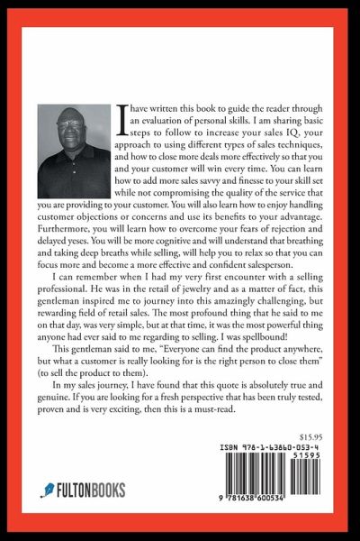 I have written this book to guide the reader through an evaluation of personal skills. I am sharing basic steps to follow to increase your sales IQ, your approach to using different types of sales techniques, and how to close more deals more effectively so that you and your customer will win every time. You can learn how to add more sales savvy and finesse to your skill set while not compromising the quality of the service that you are providing to your customer. You will also learn how to enjoy handling customer objections or concerns and use its benefits to your advantage. Furthermore, you will learn how to overcome your fears of rejection and delayed yeses. You will be more cognitive and will understand that breathing, taking deep breaths while selling, will help you to relax so that you can focus more and become a more effective and confident salesperson. I can remember when I had my very first encounter with a selling professional. He was in the retail of jewelry; as a matter of fact, this gentleman inspired me to journey into this amazingly challenging but rewarding field of retail sales. The most profound thing that he said to me on that day, actually, was very simple, but at that time, it was the most powerful thing anyone had ever said to me in regard to selling. I was spellbound! This gentleman said to me, "Everyone can find the product anywhere, but what a customer is really looking for is the right person to close them" (to sell the product to them). In my sales journey, I have found that this quote is absolutely true and genuine. If you are looking for a fresh perspective that has been truly tested and proven and is very exciting, then this is a must-read.