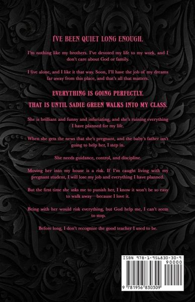 I've been quiet long enough. I'm nothing like my brothers. I've devoted my life to my work, and I don't care about God or family. I live alone, and I like it that way. Soon, I'll have the job of my dreams far away from this place, and that's all that matters. Everything is going perfectly. That is until Sadie Green walks into my class. She is brilliant and funny and infuriating, and she's ruining everything I have planned for my life. When she gets the news that she's pregnant, and the baby's father isn't going to help her, I step in. She needs guidance, control, and discipline. Moving her into my house is a risk. If I'm caught living with my pregnant student, I will lose my job and everything I have planned. But the first time she asks me to punish her, I know it won't be so easy to walk away-because I love it. Being with her would risk everything, but God help me, I can't seem to stop. Before long, I don't recognize the good teacher I used to be.