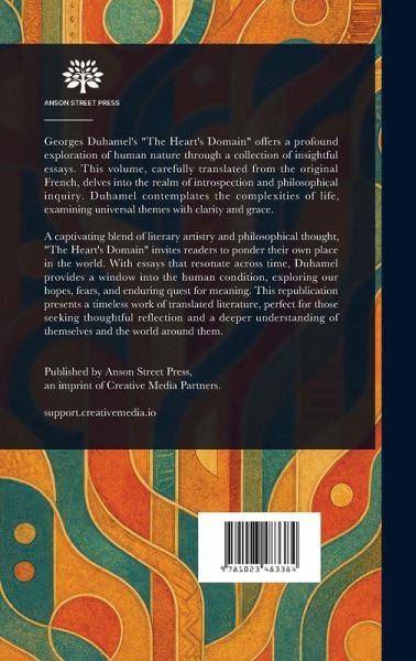 Georges Duhamel's "The Heart's Domain" offers a profound exploration of human nature through a collection of insightful essays. This volume, carefully translated from the original French, delves into the realm of introspection and philosophical inquiry. Duhamel contemplates the complexities of life, examining universal themes with clarity and grace. A captivating blend of literary artistry and philosophical thought, "The Heart's Domain" invites readers to ponder their own place in the world. With essays that resonate across time, Duhamel provides a window into the human condition, exploring our hopes, fears, and enduring quest for meaning. This republication presents a timeless work of translated literature, perfect for those seeking thoughtful reflection and a deeper understanding of themselves and the world around them. This work has been selected by scholars as being culturally important, and is part of the knowledge base of civilization as we know it. This work is in the public domain in the United States of America, and possibly other nations. Within the United States, you may freely copy and distribute this work, as no entity (individual or corporate) has a copyright on the body of the work. Scholars believe, and we concur, that this work is important enough to be preserved, reproduced, and made generally available to the public. We appreciate your support of the preservation process, and thank you for being an important part of keeping this knowledge alive and relevant.