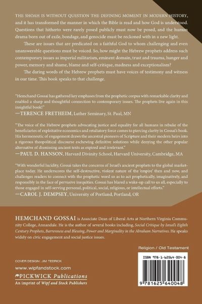 The Shoah is without question the defining moment in modern history, and it has transformed the manner in which the Bible is read and how God is understood. Questions that hitherto were rarely posed publicly must now be posed, and the human drama born out of exile, bondage, and genocide must be reckoned with in a new light. These are issues that are predicated on a faithful God to whom challenging and even unanswerable questions must be voiced. So, how might the Hebrew prophets address such contemporary issues as imperial militarism, eminent domain, trust and trauma, hunger and power, memory and shame, blame and self-critique, madness and exceptionalism? The daring words of the Hebrew prophets must have voices of testimony and witness in our time. This book speaks to that challenge.
