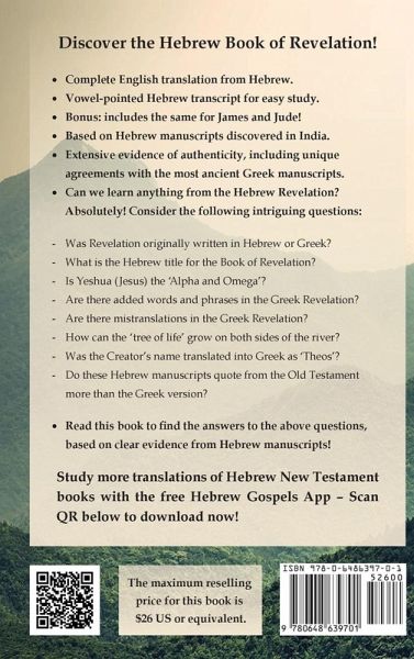 Transcripts and translations of authentic Hebrew manuscripts of Revelation, James and Jude.
