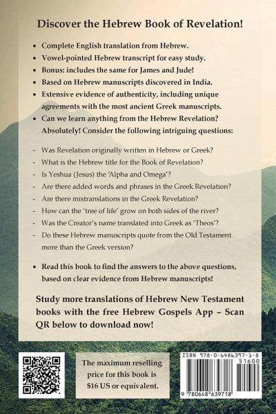 Transcripts and translations of authentic Hebrew manuscripts of Revelation, James and Jude.