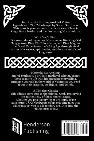 Dive into the rich and captivating world of Norse mythology, history, and legendary kings with The Heimskringla, the iconic literary masterpiece by Snorri Sturluson. This timeless collection of sagas is a must-have for anyone fascinated by the heroic tales of the Viking Age. Discover the Epic Sagas: The Heimskringla is a comprehensive compilation of sagas that chronicle the lives and deeds of legendary Norse rulers, including the saga of the great King Olaf Tryggvason, King Olaf Haraldsson, and King Magnus the Good. Journey through the dramatic battles, alliances, and legendary feats that shaped the Viking world, from the heroic deeds of warriors to the rise and fall of kingdoms. Snorri Sturluson's Masterful Prose: Snorri Sturluson, one of Iceland's greatest medieval scholars and storytellers, weaves these sagas with a masterful blend of historical accounts and mythical elements. His vivid storytelling style brings to life the characters and events of the Viking Age, making The Heimskringla an engaging and immersive reading experience. A Window into Viking Culture: The Heimskringla not only offers thrilling narratives but also provides valuable insights into the social and cultural aspects of Viking society. Delve into the customs, traditions, and beliefs of the Norse people as you explore this treasure trove of sagas. A Timeless Classic: This edition of The Heimskringla is a faithful translation of Snorri Sturluson's original work, ensuring that the essence and authenticity of these sagas are preserved for modern readers. Whether you're a history enthusiast, a mythology buff, or simply looking for captivating tales of adventure, Heimskringla is a literary gem that promises hours of reading pleasure. Add this book to your collection and embark on a journey through the legendary sagas of the Viking Age. This single edition is volume 2 of Henderson Publishing's Norse Literature Series. This book has been newly typeset. It is not a facsimile edition.
