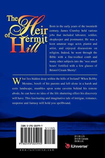 What lies hidden deep within the hills of Ireland? When Bobby Meraine, bereft of his parents and left alone in a harsh and eerie landscape, stumbles upon some caverns behind his remote abode, he can have no idea of the life shattering effect his discovery will have. This fascinating and imaginative tale of intrigue, romance, suspense and fantasy will hold you spellbound.