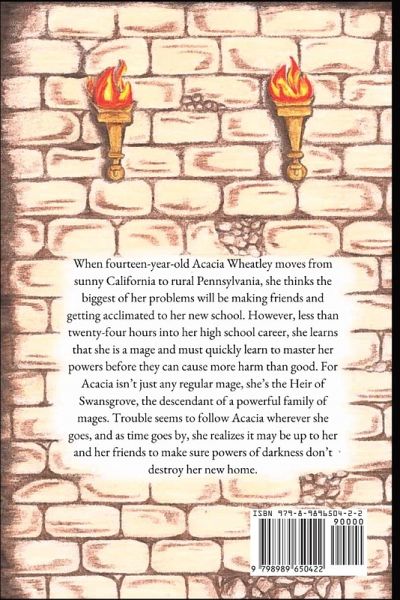 When fourteen year old Acacia Wheatley moves from sunny California to rural Pennsylvania, she thinks the biggest of her problems will be making friends and getting acclimated to her new school. However, less than 24 hours into her high school career, she learns that she is a mage and must quickly learn to master her powers before they can cause more harm than good. For Acacia isn't just any regular mage, she's the Heir of Swansgrove, the descendant of a powerful family of mages. Trouble seems to follow Acacia wherever she goes, and as time goes by, she realizes that it may be up to her and her friends to make sure powers of darkness don't destroy her new home.