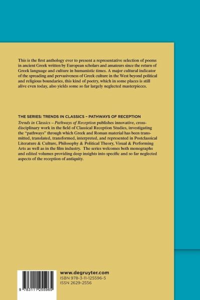 Traditionally, the history of Ancient Greek literature ends with Antiquity: after the fall of Rome, the literary works in ancient Greek generally belong to the domain of the Byzantine Empire. However, after the Byzantine refugees restored the knowledge of Ancient Greek in the west during the early humanistic period (15th century), Italian scholars (and later their French, German, Spanish colleagues) started to use Greek, a purely literary language that no one spoke, for their own texts and poems. This habit persisted with various ups and downs throughout the centuries, according to the development of Greek studies in each country. The aim of this anthology - the first one of this kind - is to give a selective overview of this kind of humanistic poetry in Ancient Greek, embracing all major regions of Europe and trying to concentrate on remarkable pieces of important poets. The ultimate goal of the book is to shed light on an important and so far mostly neglected aspect of the European heritage.