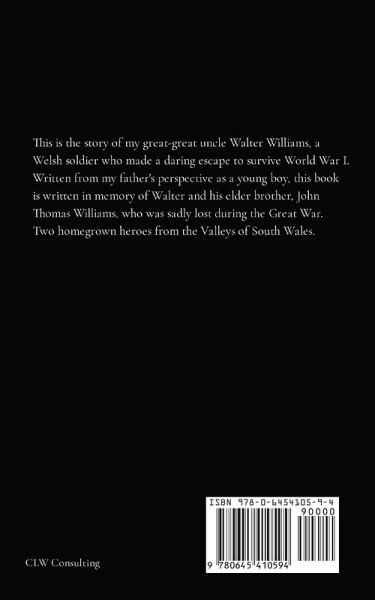 From the South Welsh valleys across Europe, this is the story of my great-uncles Walter and John Thomas Williams who fought valiantly during World War I. Family history is finally committed to paper.
