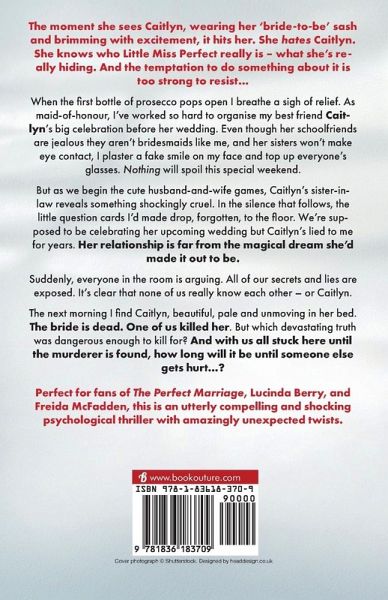 The moment she sees Caitlyn, wearing her 'bride-to-be' sash and brimming with excitement, it hits her. She hates Caitlyn. She knows who she is - what she's really hiding. And the temptation to do something about it is too strong to resist... It sickens me, the way they all think she's so perfect. I plaster a fake smile on my face - all I have to do is pretend I'm enjoying the next few days. It shouldn't be so hard. After all, I've been lying for years. But I hadn't counted on the secrets that everyone else has been keeping for so long. None of these women are what they seem: sisters, in-laws, friends and bridesmaids. Especially not the bride. One of us won't survive the trip. And one of us, will become a killer... Perfect for fans of The Perfect Marriage, Lucinda Berry and Freida McFadden, this is an utterly compelling and shocking psychological thriller with amazingly unexpected twists. What readers are saying about The Hen Party: 'Absolutely amazing... I was totally gripped from the beginning... The twists the turns were just like a rollercoaster... fantastic... A must read. Absolutely outstanding' Gary's Book World, ¿¿¿¿¿ 'Must read!!! Wow... What a great story... a twist came out of nowhere that blew me away.' Goodreads reviewer, ¿¿¿¿¿ 'Brilliant... I raced through this book in just over a day... I would never have predicted the twist at the end... I loved it!' Goodreads reviewer, ¿¿¿¿¿ 'Oh wow... One of the best psychological thrillers I have ever read... Such a brilliant read.' Goodreads reviewer, ¿¿¿¿¿ 'OMG I loved this book. I love how it ended... Very hard to put down.' Goodreads reviewer, ¿¿¿¿¿ 'What a story... It was such a great book, I read into the night, I finished this in 1 day... You have got to read this book.' Goodreads reviewer, ¿¿¿¿¿ 'Wow!... stunning! It will grip you from beginning to end. You will not want to put it down.' Goodreads reviewer, ¿¿¿¿¿ 'This book has instantly become one of my top reads... Amazing... brilliantly twisty.' Goodreads reviewer, ¿¿¿¿¿ 'Exciting and full of suspense.... I was on the edge, right until the end of the book.' Goodreads reviewer, ¿¿¿¿¿ 'Brilliant... I was utterly unable to put it down. I read it in a handful of days.' Goodreads reviewer, ¿¿¿¿¿ 'I just loved this book, it kept me guessing right to the end.' Goodreads reviewer, ¿¿¿¿¿