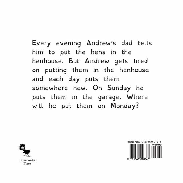Every evening Andrew's dad asks him to put the hens in the henhouse. But Andrew gets tired of putting the hens in the henhouse everyday. So, on Sunday he puts the hens in the garage. Then everyday he puts the hens in a different room in the house.