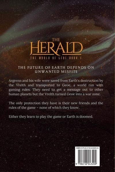 The future of Earth depends on unwanted misfits. Argrenn and his wife were saved from Earth's destruction by the Vrelth and transported to Geoe, a world run with gaming rules. They need to get a message out to other human planets but the Vrelth turned Geoe into a war zone. The only protection they have is their new friends and the rules of the game - none of which they know. Either they learn to play the game or Earth is doomed.