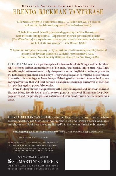 From the bestselling author of The Illuminator comes a magnificent tale about the power of love and the perils of faith Tudor England is a perilous place for booksellers Kate Gough and her brother John, who sell forbidden translations of the Bible. Caught between warring factions-English Catholics opposed to the Lutheran reformation, and Henry VIII's growing impatience with the Pope's refusal to sanction his marriage to Anne Boleyn-Kate embarks on a daring adventure that will lead her into a dangerous marriage and a web of intrigue that pits her against powerful enemies. From the king's lavish banquet halls to secret dungeons and the inner sanctums of Thomas More, Brenda Rickman Vantrease's glorious new novel illuminates the public pageantry and the private passions of men and women of conscience in treacherous times.