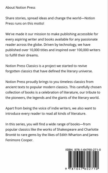 Notion Press proudly brings to you timeless classics from ancient texts to popular modern classics. This carefully chosen collection of books is a celebration of literature, our tribute to the pioneers, the legends and the giants of the literary world. Apart from being the voice of indie writers, we also want to introduce every reader to read all kinds of literature. In this series, you will find a wide range of books-from popular classics like the works of Shakespeare and Charlotte Brontë to rare gems by the likes of Edith Wharton and James Fenimore Cooper.