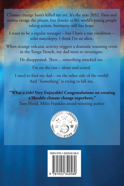 A near-future Sci-Fi thriller - Fight the Apocalypse! Sam Edwards wants to be a regular teenager, but he depends on the sun for strength. When his climate scientist father goes missing, he's thrust from suburbia into a deadly voyage of adventures to save Earth from carbon breathing galactic invaders. "This is an important book for these challenging times, especially for young people. We all need to activate our Hero Gene to create a world where we are living in harmony with each other and our environment" Sue Lennox, 2020 NSW Senior Australian of the year and OzGREEN Co-Founder An exhilarating blend of Marvel, Star Wars, and Harry Potter. For Ages 11 plus.