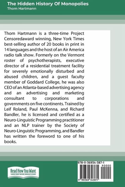 This is the most important, dynamic book on the cancers of monopoly by giant corporations written in our generation."--from the foreword by Ralph Nader American monopolies dominate, control, and consume most of the energy of our entire economic system; they function the same as cancer does in a body, and, like cancer, they weaken our systems while threatening to crash the entire body economic. American monopolies have also seized massive political power and use it to maintain their obscene profits and CEO salaries while crushing small competitors. But Thom Hartmann, America's #1 progressive radio host, shows we've broken the control of behemoths like these before, and we can do it again. Hartmann takes us from the birth of America as a revolt against monopoly (remember the Boston Tea Party?), to the largely successful efforts of both Presidents Theodore and Franklin Roosevelt and other like-minded leaders to restrain corporations' monopolistic urges, to the massive changes in the rules of business starting during the "Reagan Revolution" that have brought us to the cancer stage of capitalism. He shows the damage monopolies have done to so many industries: agriculture, healthcare, the media, and more. Individuals have taken a hit as well: the average American family pays a $5,000 a year "monopoly tax" in the form of higher prices for everything from pharmaceuticals to airfare to household goods and food. But Hartmann also describes commonsense, historically rooted measures we can take--such as revitalizing antitrust regulation, taxing great wealth, and getting money out of politics--to pry control of our country from the tentacles of the monopolists.