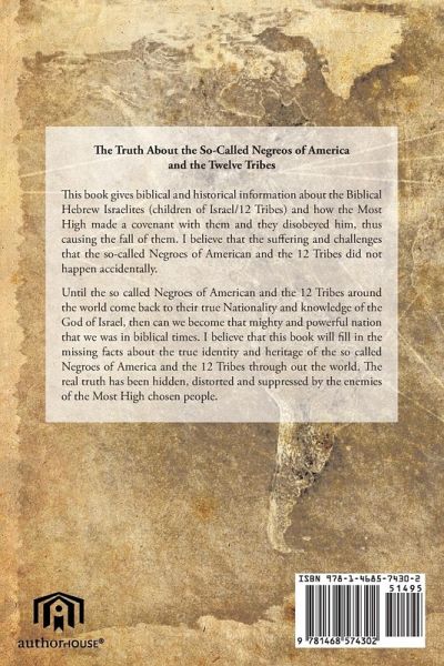 This book gives biblical and historical information about the Biblical Hebrew Israelites (children of Israel/12 Tribes) and how the Most High made a covenant with them and they disobeyed him, thus causing the fall of them. I believe that the suffering and challenges that the so-called Negroes of American and the 12 Tribes did not happen accidentally. Until the so called Negroes of American and the 12 Tribes around the world come back to their true Nationality and knowledge of the God of Israel, then can we become that mighty and powerful nation that we was in biblical times. I believe that this book will fill in the missing facts about the true identity and heritage of the so called Negroes of America and the 12 Tribes throughout the world. The real truth has been hidden, distorted and suppressed by the enemies of the Most High chosen people.