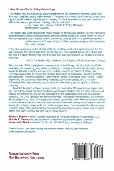 Even well-intentioned initiatives such as the recent effort to demolish and “revitalize” the worst developments seem to be ineffective at combating crime, while the drastic changes leave many vulnerable families facing an uncertain future. The Hidden War sends a humbling message to policy makers and prognosticators who claim to know the right way to “solve poverty.”