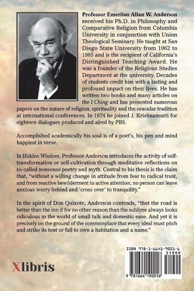In Hidden Wisdom, Professor Anderson introduces the activity of self-transformation or self-cultivation through meditative reflections on so-called nonsense poetry and myth. Central to his thesis is the claim that, "without a willing change in attitude from fear to radical trust, and from reactive bewilderment to active attention no person can leave anxious worry behind and 'cross over' to tranquility." In the spirit of Don Quixote, Anderson contends, "that the road is better than the inn if for no other reason than that the sublime always looks ridiculous in the world of small talk and domestic ease. And yet it is precisely on the ground of the commonplace that every ideal must pitch and strike its tent or fail to own a habitation and a name."