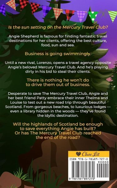 TRAVEL THE WORLD IN THIS LAUGH-OUT-LOUD SECOND CHANCE ROM-COM ABOUT STARTING AGAIN LATER IN LIFE. ________________________________________________ Is the sun setting on the Mercury Travel Club? Angie Shepherd is famous for finding fantastic travel destinations for her clients, offering the best culture, food, sun and sea. Business is going swimmingly. Until a new rival, Lorenzo, opens a travel agency opposite Angie's beloved Mercury Travel Club. And he's playing dirty in his bid to steal their clients. There is nothing he won't do to drive them out of business. Desperate to save The Mercury Travel Club, Angie and her best friend Patty embrace their inner Thelma and Louise to test out a new road trip through beautiful Scotland. From gorgeous beaches, to luxurious lodges - even a library hidden in the woods - they've found the idyllic destination. Will the highlands of Scotland be enough to save everything Angie has built? Or has The Mercury Travel Club reached the end of the road? This laugh-out-loud feel-good romantic comedy of second chances is perfect for fans of Caroline James, Maddie Please, Jill Mansell, Shari Low, Judy Leigh and Jennifer Bohnet.