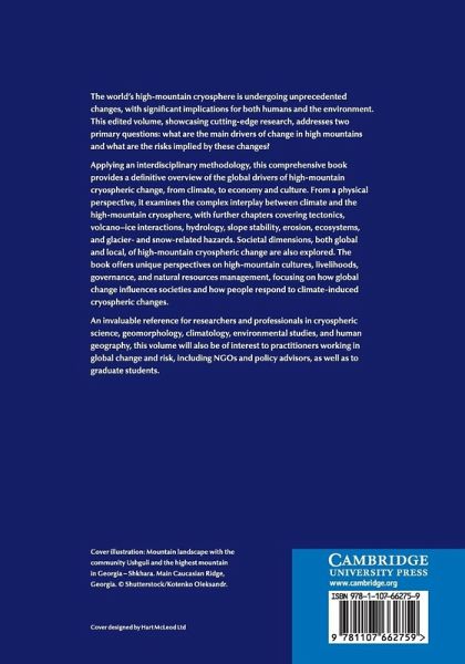 This edited volume, showcasing cutting-edge research, addresses two primary questions - what are the main drivers of change in high-mountains and what are the risks implied by these changes? From a physical perspective, it examines the complex interplay between climate and the high-mountain cryosphere, with further chapters covering tectonics, volcano-ice interactions, hydrology, slope stability, erosion, ecosystems, and glacier- and snow-related hazards. Societal dimensions, both global and local, of high-mountain cryospheric change are also explored. The book offers unique perspectives on high-mountain cultures, livelihoods, governance and natural resources management, focusing on how global change influences societies and how people respond to climate-induced cryospheric changes. An invaluable reference for researchers and professionals in cryospheric science, geomorphology, climatology, environmental studies and human geography, this volume will also be of interest to practitioners working in global change and risk, including NGOs and policy advisors.