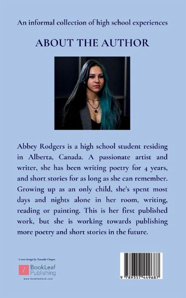 Abbey Rodgers is a high school student residing in Alberta, Canada. A passionate artist and writer, she has been writing poetry for 4 years, and short stories for as long as she can remember. Growing up as an only child, she's spent most days and nights alone in her room, writing, reading or painting. This is her first published work, but she is working towards publishing more poetry and short stories in the future.