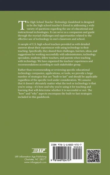 This guidebook is designed to be the high school teacher's friend in addressing a wide variety of questions regarding the use of educational and instructional technologies. It can serve as a companion and guide through the myriad challenges and opportunities related to the effective use of technology in one's classroom and school. A sample of U.S. high school teachers provided us with detailed answers about their experiences with using technology in their teaching. Specifically, they shared their challenges, barriers, ideas, and suggestions for working successfully with administrators, technology specialists, students, fellow teachers, and parents when teaching with technology. We have organized the teachers' experiences and recommendations according to each stakeholder group. Rather than recommending or reviewing specific educational technology companies, applications, or tools, we provide a large number of strategies that are "built to last" and should be applicable regardless of the specific tool under consideration. We assume that it doesn't ultimately matter what the tool or technology is that you're using-it's how and why you're using it for teaching and learning that will determine whether it is successful or not. The "how" and "why" aspects encompass the built-to-last strategies included in this guidebook.